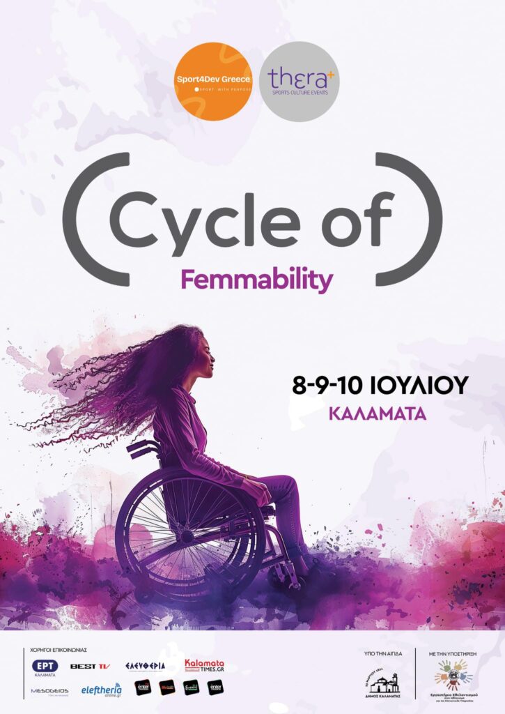 Η Καλαμάτα γίνεται ο πυρήνας μιας μοναδικής τριήμερης δράσης που προάγει τη γυναικεία ενδυνάμωση μέσα από τη συμπερίληψη και την αναγνώριση της δύναμης της διαφορετικότητας. Το “Cycle of Femmability” έρχεται στις 8, 9 και 10 Ιουλίου για να γιορτάσει τη φωνή, την ανθεκτικότητα και τη δημιουργικότητα των γυναικών με αναπηρία – χωρίς αποκλεισμούς, χωρίς περιορισμούς.